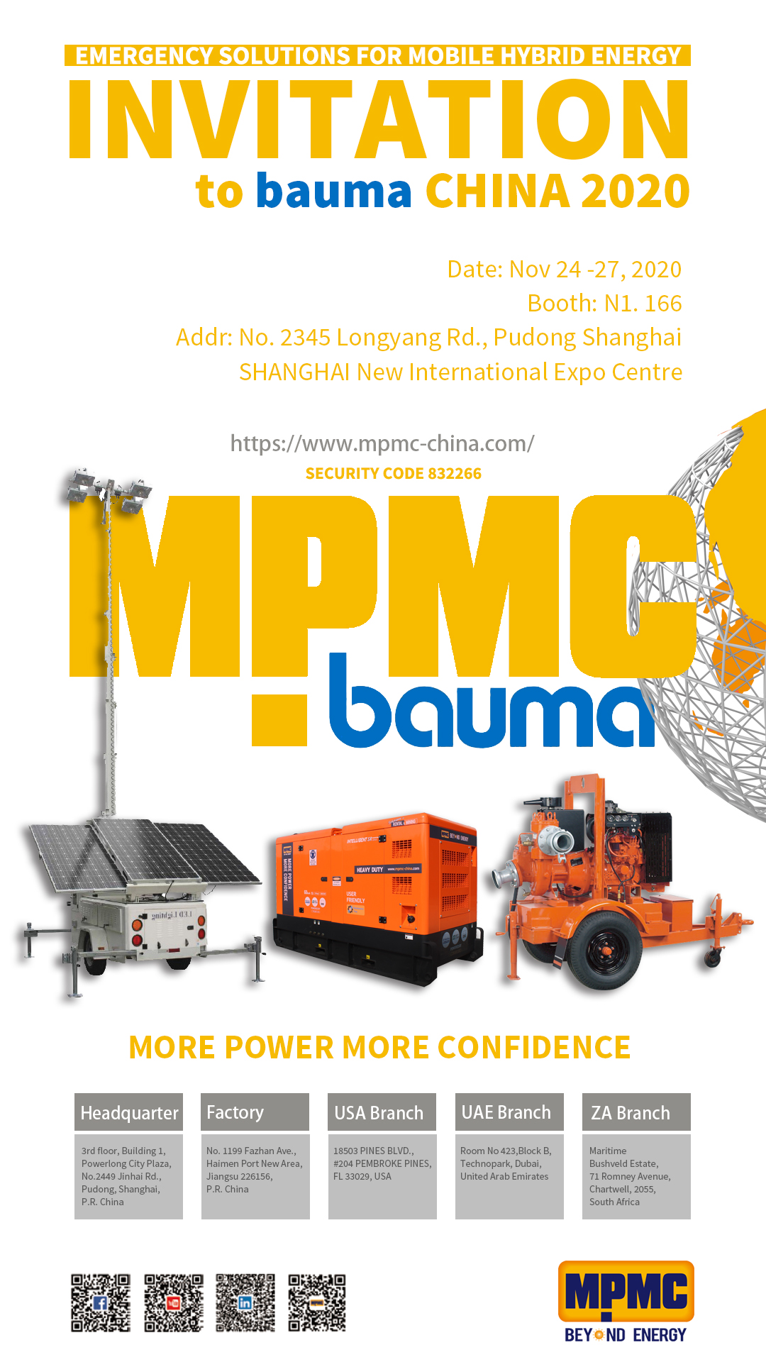 A primeira exposição off-line em 2020, além do belo conjunto gerador e torre de luz solar, a MPMC trouxe a bomba de lama para conhecê-lo pela primeira vez. Soluções de Bombas Gorrif , nossa marca subsidiária para soluções totais de manuseio de fluidos, não pode ’ esperar para se apresentar na BAUMA China 2020.