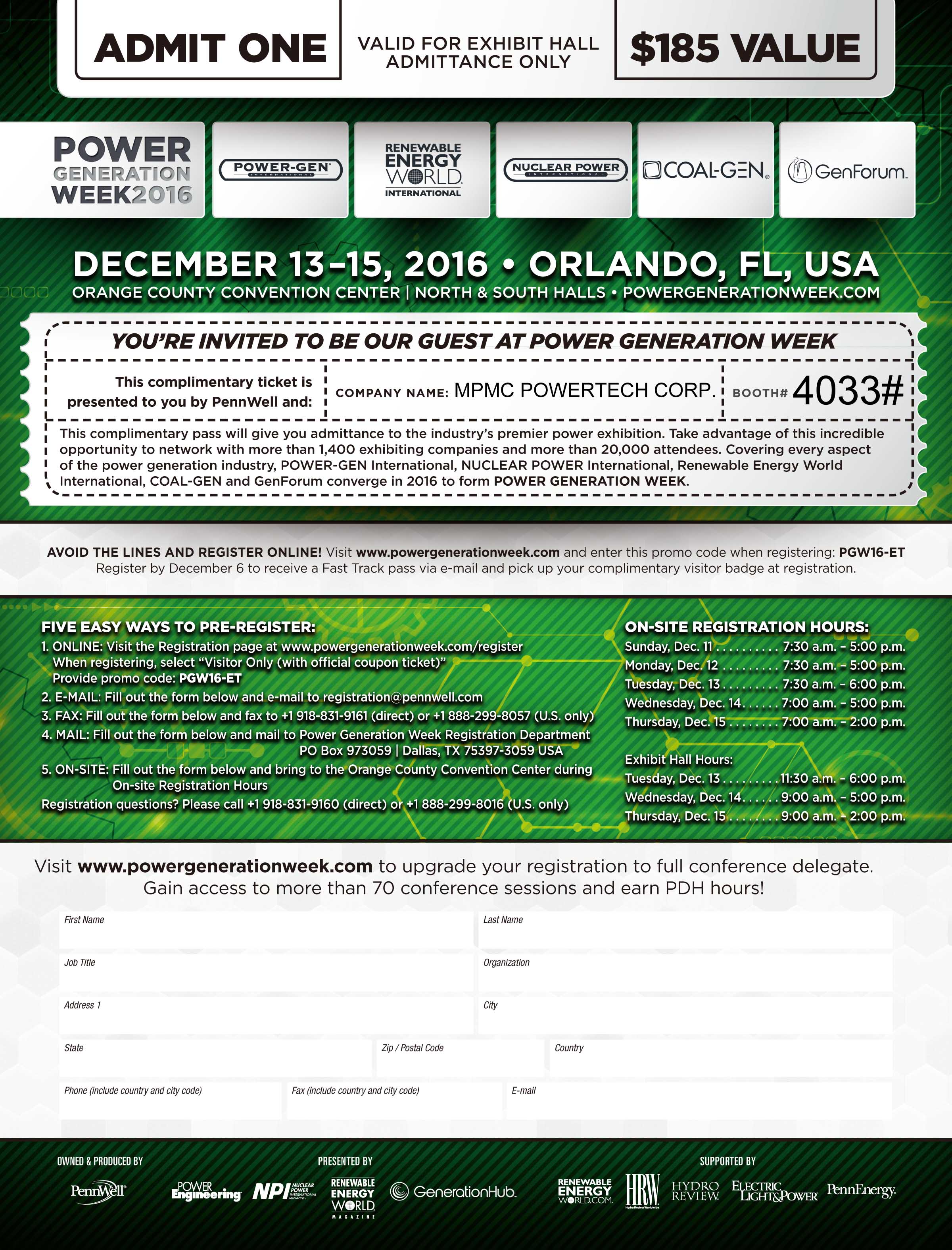 O seguinte passe gratuito lhe dará acesso à principal feira da indústria de energia exposição.
